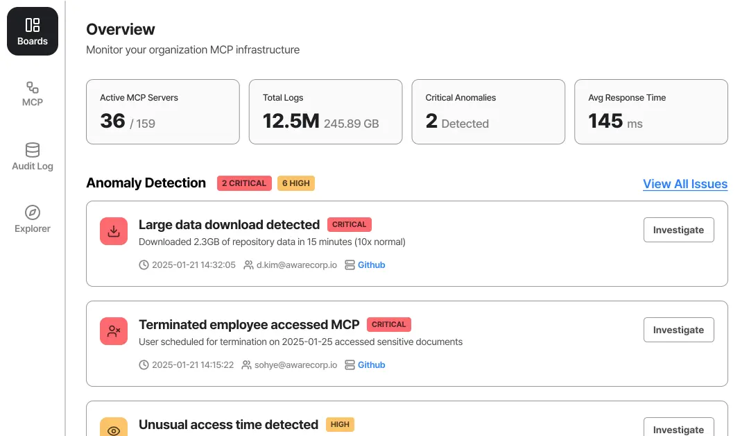 - •Severity Alert MCP servers by Aware
